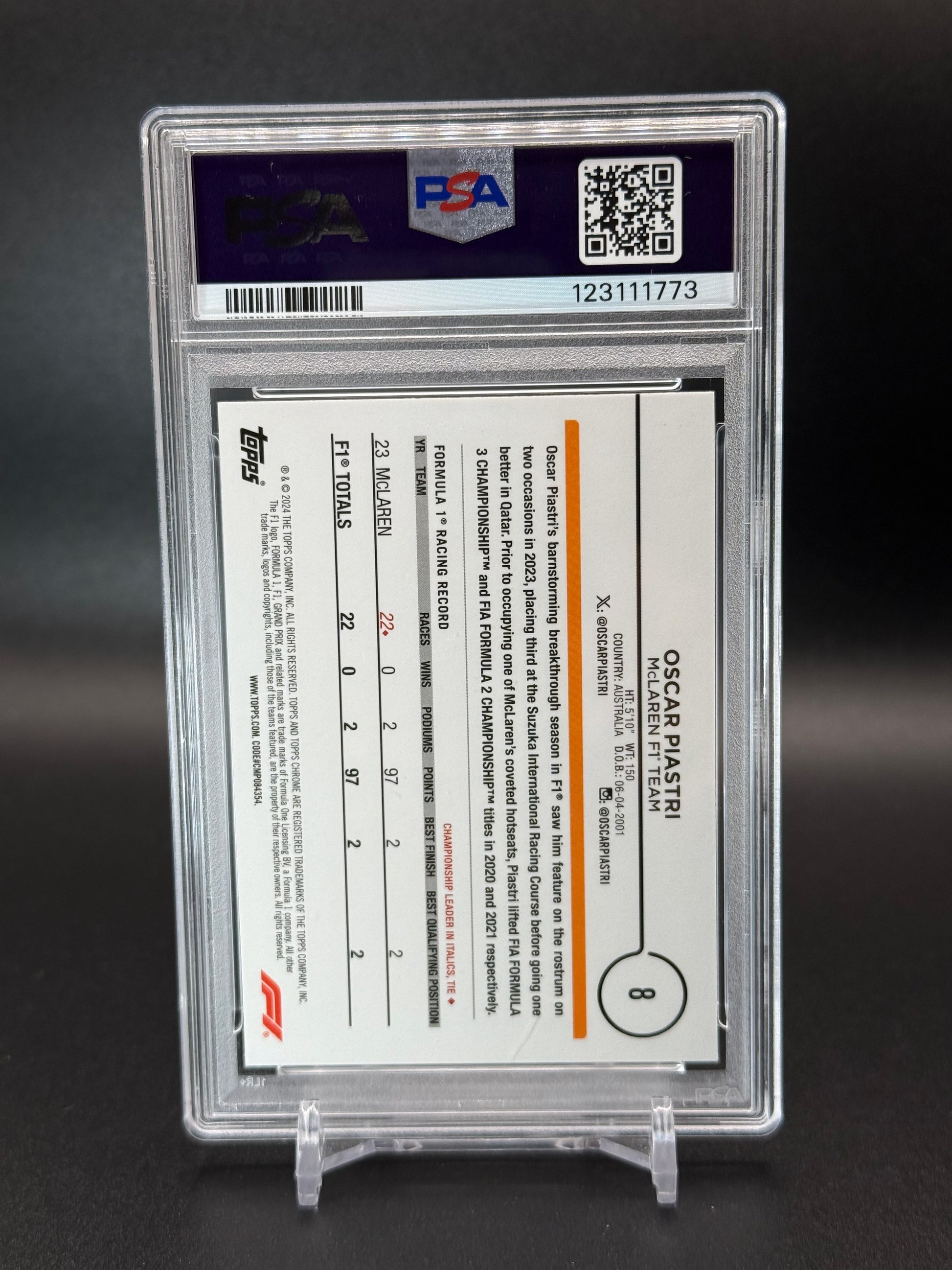 2024 Topps Chrome Formula 1 Oscar Piastri Purple Checker PSA 10