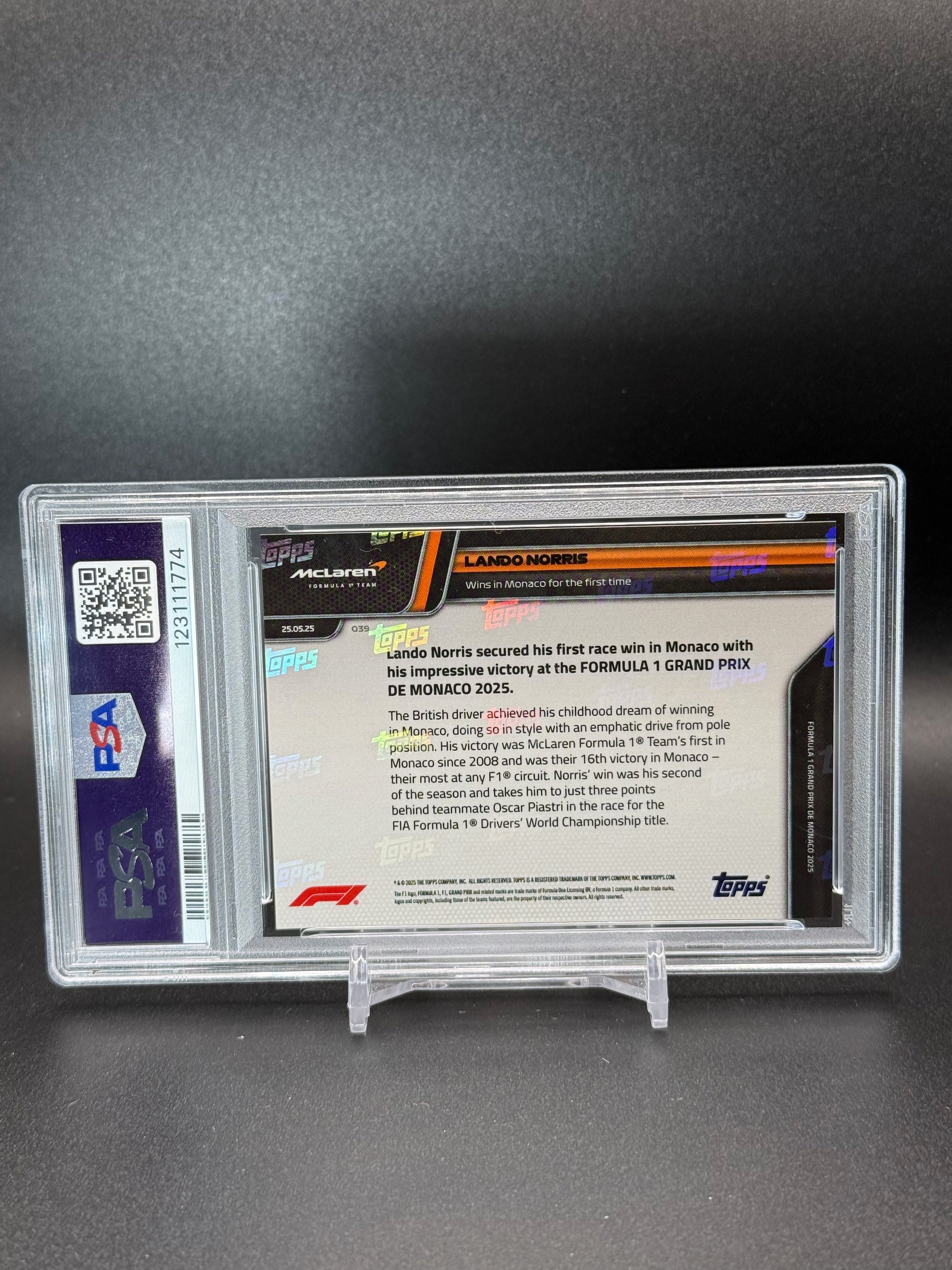 2025 Topps Now F1 75 Land Norris #039 Orange Foil PSA 10